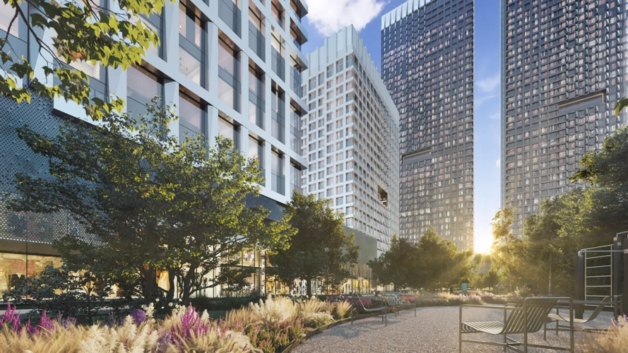 На территории комплекса планируют построить школу и детский сад, комьюнити-центр, спортивный и спа-комплекс, прогулочный бульвар и ландшафтный парк.