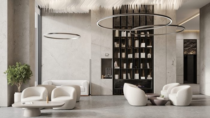 Здесь разместятся лаундж-зона с камином и роялем, коворкинг, переговорные, кинотеатр, СПА- и релакс-центр, а также всесезонное барбекю-патио.