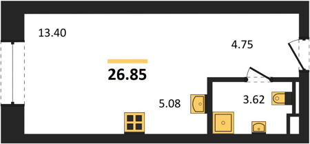 Площадь от 24.5 м2