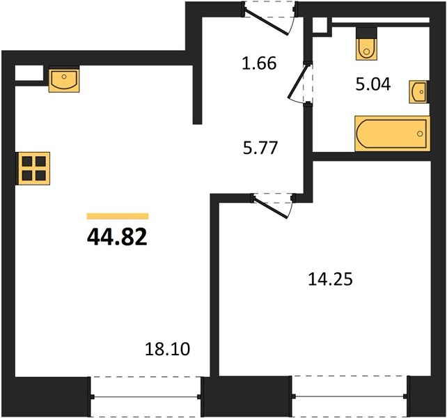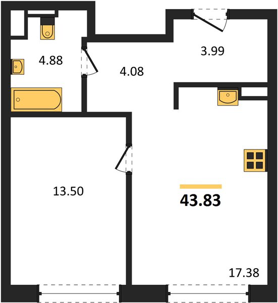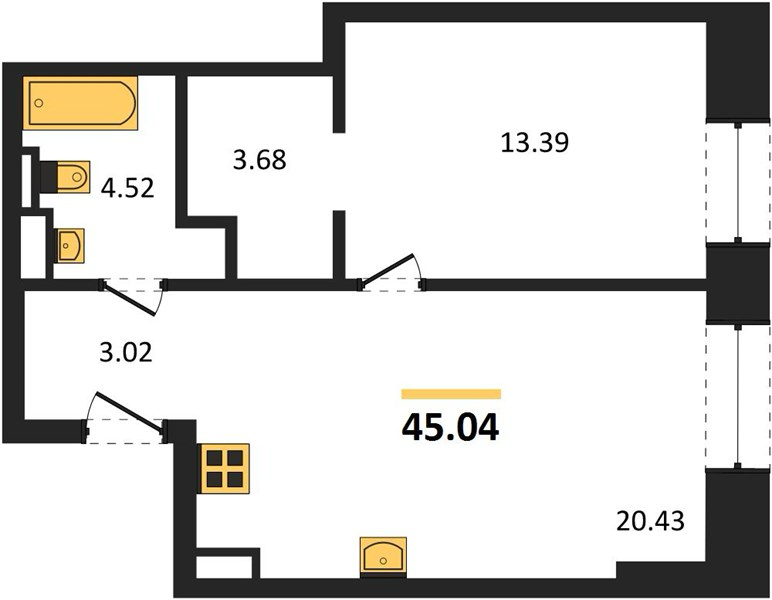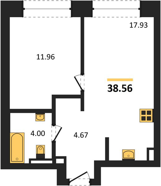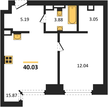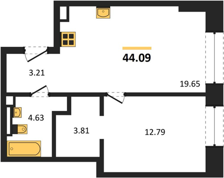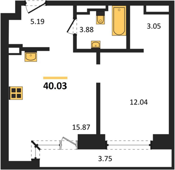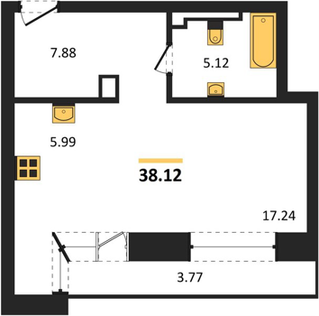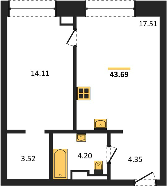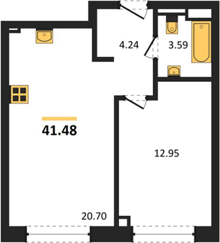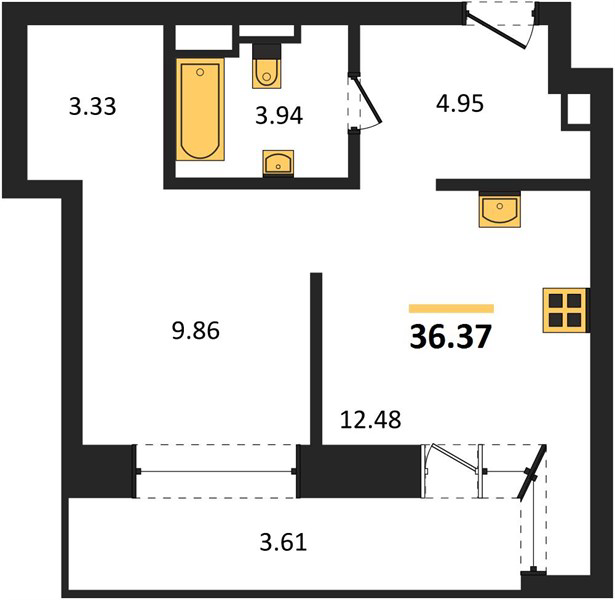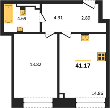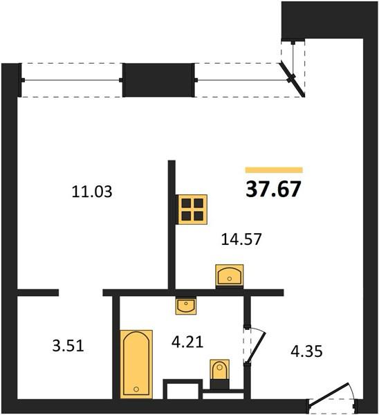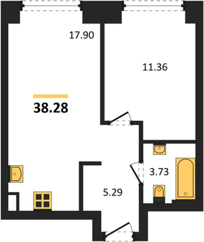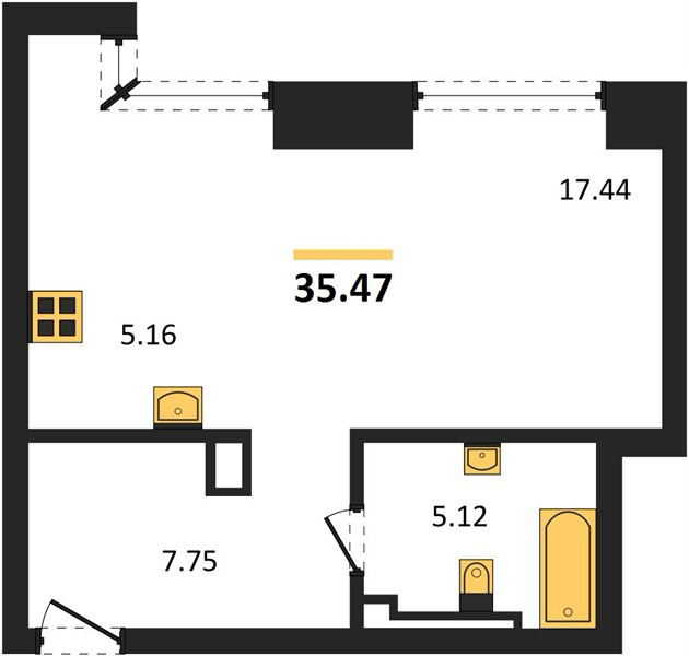 Площадь от 35.5 м2