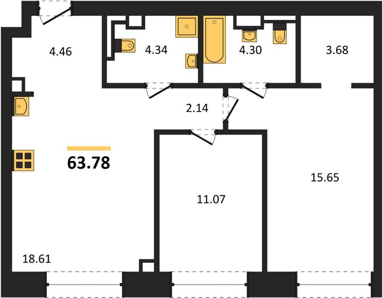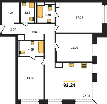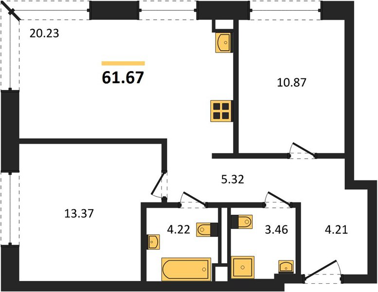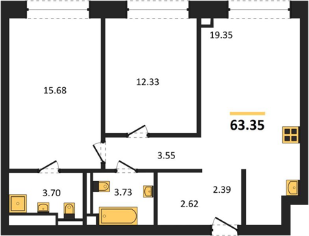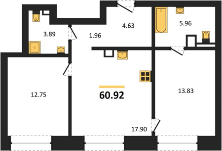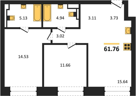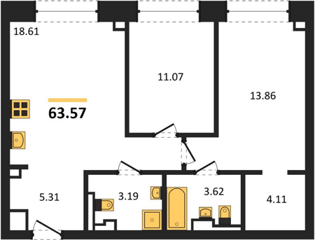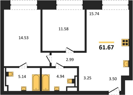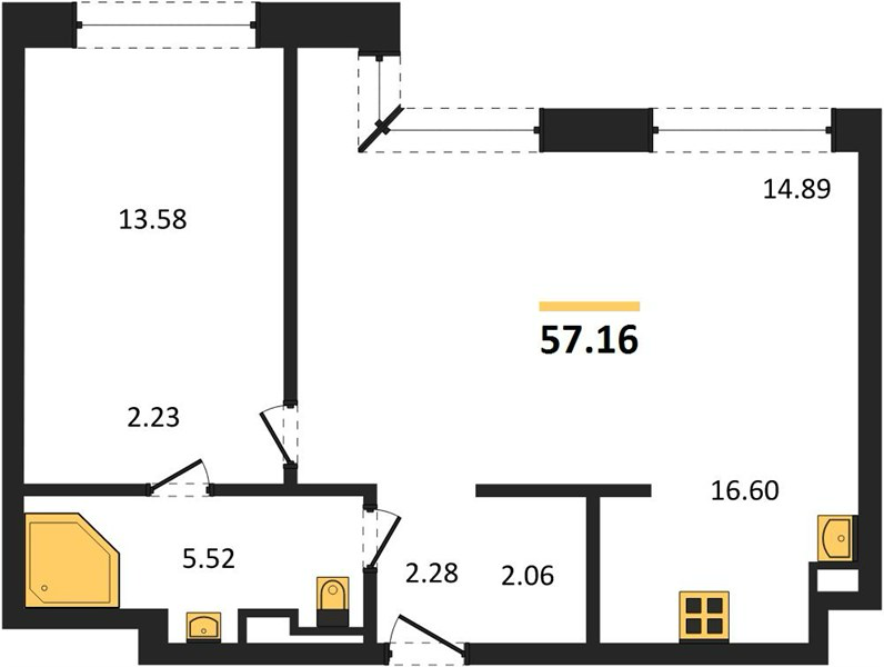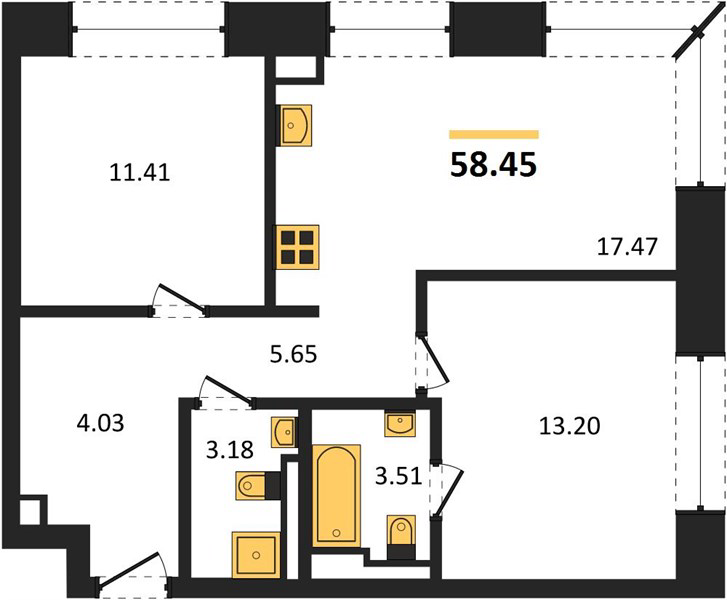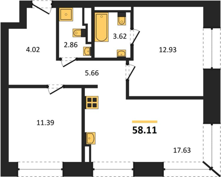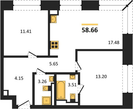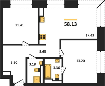 Площадь от 58.1 м2