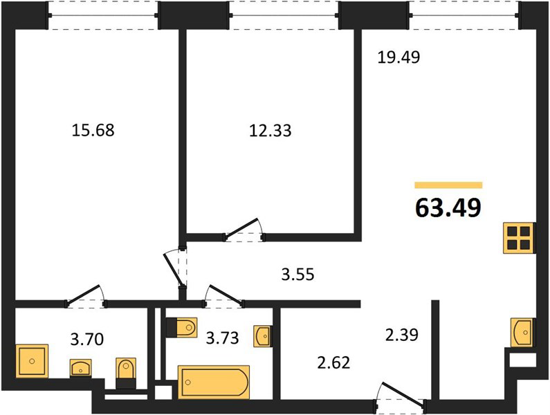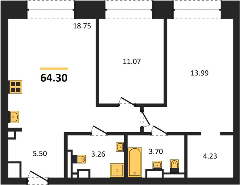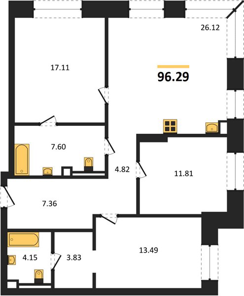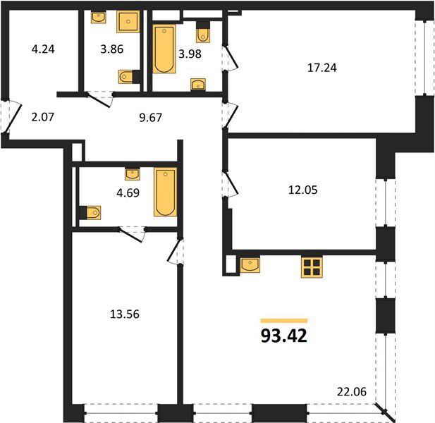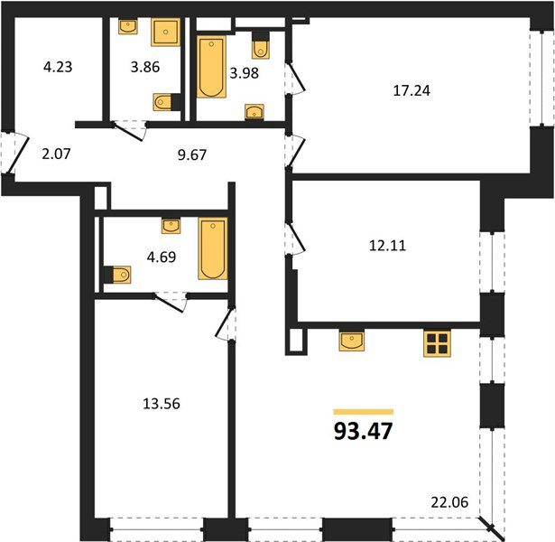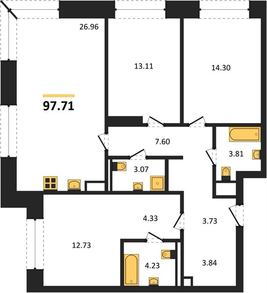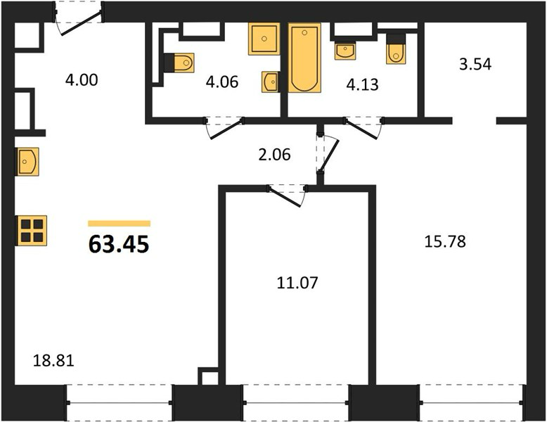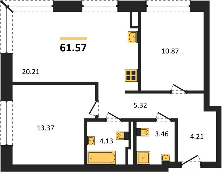 Площадь от 58.1 м2