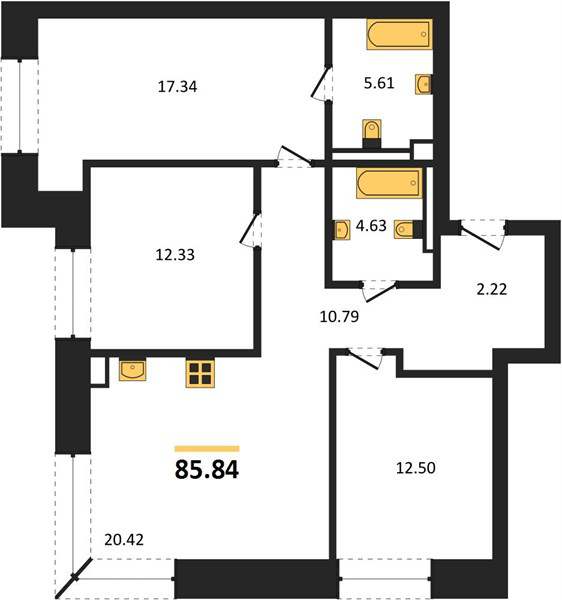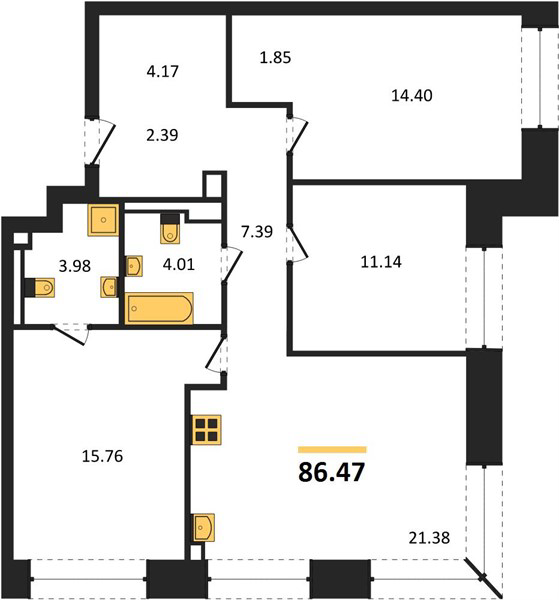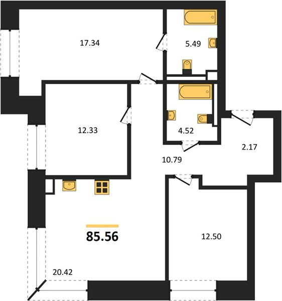Площадь от 85.6 м2
